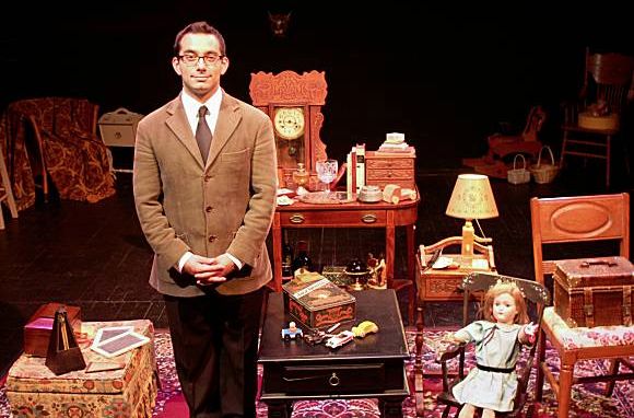 Entering the theatre, the audience steps onto a set that might be described as a “cabinet of wonders”. We are in an upscale Victorian parlor, decorated by shelf after shelf of a mysterious collection of oddities. Mr. Cagigal enters as our genial host, dressed nattily but casually, welcoming us to view his collection. He begins charmingly, telling us that “Once upon a time, an audience came to see a magic show…” He moves on to discuss the collection of oddities, telling carefully crafted stories about many of them. The stories are charming in their own right.