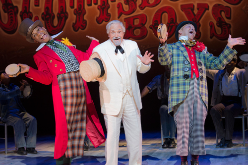 Let me get this much out of the way: The Scottsboro Boys is hugely entertaining, beautifully staged, delightfully choreographed, superbly acted, well designed, funny, moving, and graced with a wonderful score by the storied team of Kander & Ebb. It also has the inestimable treat of a star turn by the beloved Hal Linden. Alright, publicists, there are your quotes. Use ’em if you like. But in doing so, you’d be playing a sleight of hand with the import of the critical review which follows. That would be exactly the sort of chicanery played (unwittingly, I think) by the creators of The Scottsboro Boys.