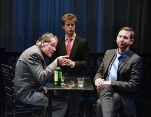 In keeping with this modern conception, this Merchant is set in a contemporary milieu among fashionable people, living in a maelstrom of social interaction and pressures. They dress sharply, defining themselves by class and behavior. They scurry about tied to their cell phones (like so many of us), making constant social adjustments, getting along. In a marvelous prologue, presented without dialogue, we watch this community interact on the plaza and note Shylock’s presence as an obvious outsider. We feel the subtle social pressure that both squeezes him out and impels the passersby to make a display of their contempt. When Antonio, an evident outsider himself, pauses to flamboyantly spit upon Shylock, we feel the pain in both men. It is a wonder to experience the clarity with which Bousel communicates these ideas. Here is real expertise in direction, much to be admired.