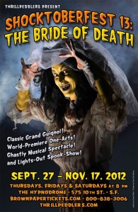 Do you love Halloween? Then grab your broomstick and a pumpkin and head out to The Hypnodrome where Thrillpeddlers offers “Shocktoberfest 13: The Bride of Death”, a delightfully ghoulish goulash of Grand Guignol humor and horror.