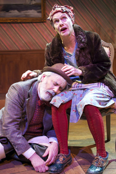 “The Chairs” by Eugene Ionesco, translated by Rob Melrose, produced by Cutting Ball Theater. Director: Annie Elias. Scenic Designer: Michael Locher. Lighting Designer: Heather Basarab. Costume Designer: Sarah Roland. Sound Designer: Theodore J. H. Hulsker.