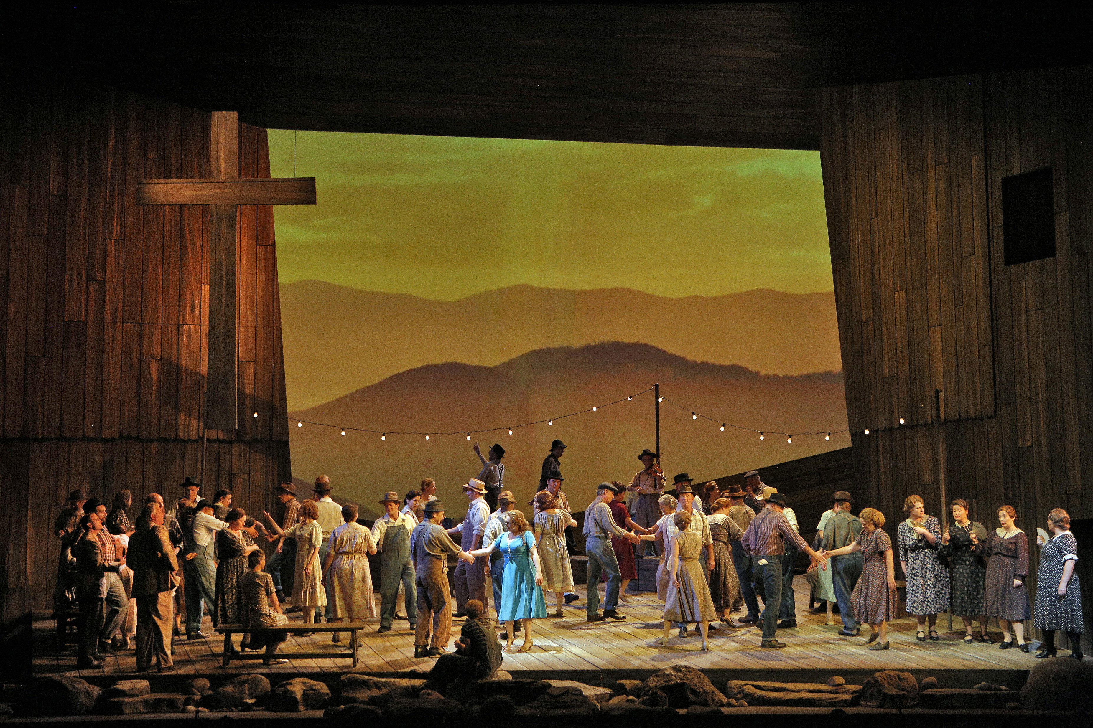 “Susannah” , music and text by Carlisle Floyd. Produced by the San Francisco Opera; costumes from a co-production with Lyric Opera of Chicago and Houston Grand Opera. Conductor: Karen Kamensek. Director: Michael Cavanagh. Set: Erhard Rom. Costumes: Michael Yeargan. Lighting: Gary Marder. Chrous Director: Ian Robertson. Choreographer: Lawrence Pech. Fight Director: Dave Maier.