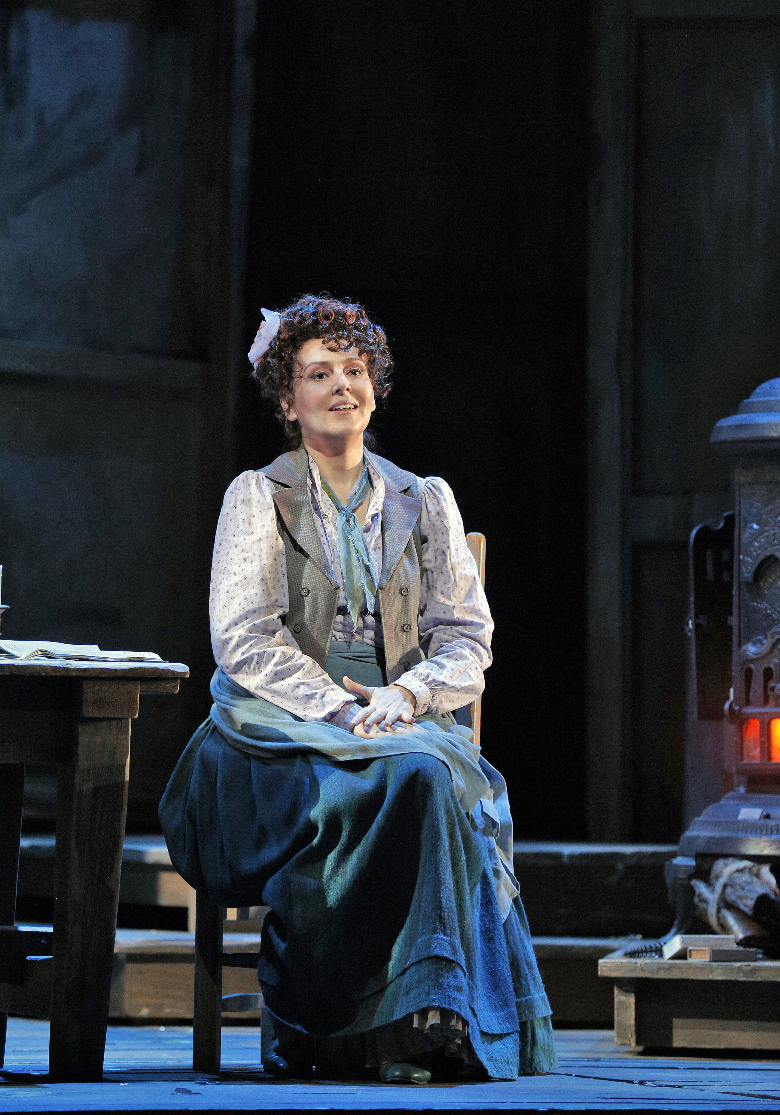 At the heart of the opera, for both music and acting, is the love story between Rodolfo and Mimi. Musically, Michael Fabiano’s Rodolfo owns this production. His soaring, viscerally thrilling tenor is flawless in aria after aria with singing that seems almost inhumanly perfect in execution. And his acting is on a par with his singing. Fabiano is an operatic superstar, and nothing in his performance disappoints. As Mimi, Alexia Voulgaridou, making her SF Opera debut, matches him well as an actress, but seems to be unhappy in her vocal performance with some of her higher notes sounding breathy and tentative and an occasional uncertainty regarding tempos. These problems were most evident in Act I, and much improved by Act II. In any case, they did not diminish the emotional impact of her final aria, which succeeded — as it must — in evoking tears for Mimi’s sad denoument.