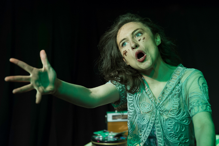 Áine Ryan’s “Kitty in the Lane” is an extended monologue by Kitty, who lives in poverty on an isolated lane in rural Ireland. The name Kitty suggests a cat, not a human being, and indeed when we meet her she seems to be not quite like an ordinary person. She has a disturbingly fay presence, ballet dancer thin with an odd angular physicality. She moves like a puppet being jerked on strings, very mechanically, as if her soul is missing. Her personality is as hard as nails. It is a powerful choice in that even before we hear Kitty’s story, we can see that she is damaged. Her story emerges gradually — she is caring for a sick father. She loves a brother who is absent. She has an unreliable boyfriend. Watching her, we can see something is terribly wrong, that she is not merely damaged, but monstrous. Slowly, we come to understand why she is, indeed a monster, and what has made her so. It is the story of a life of grinding poverty and oppression, of every imaginable sort. There is sexual abuse, emotional abuse, death, rape, and more. It is unrelenting. And yet, we see glimpses of a charming lass, a beautiful, intelligent, loving lady and in the midst of our horror at what she has become, we are charmed and saddened by the glimpses of what she might have been. All of this is presented by Ryan in a fabulously accomplished piece of acting in which she creates an entire community of characters from Kitty’s competitive best friend, to her athlete brother, her oppressive father, the townspeople, her boyfriend, a corrupt constable who raped her at her own brother’s funeral. The play is a devastating indictment of systemic poverty, unchecked patriarchy, and the damage it wrecks on the innocent. How devastating? Even though there is no nudity or obvious obsenity, several audience members walked out on the performance which I attended. They were clearly upset by the intensity of the piece. Those that remained, however, experienced a profound catharsis by the time it was over, and the applause was appropriately thunderous.