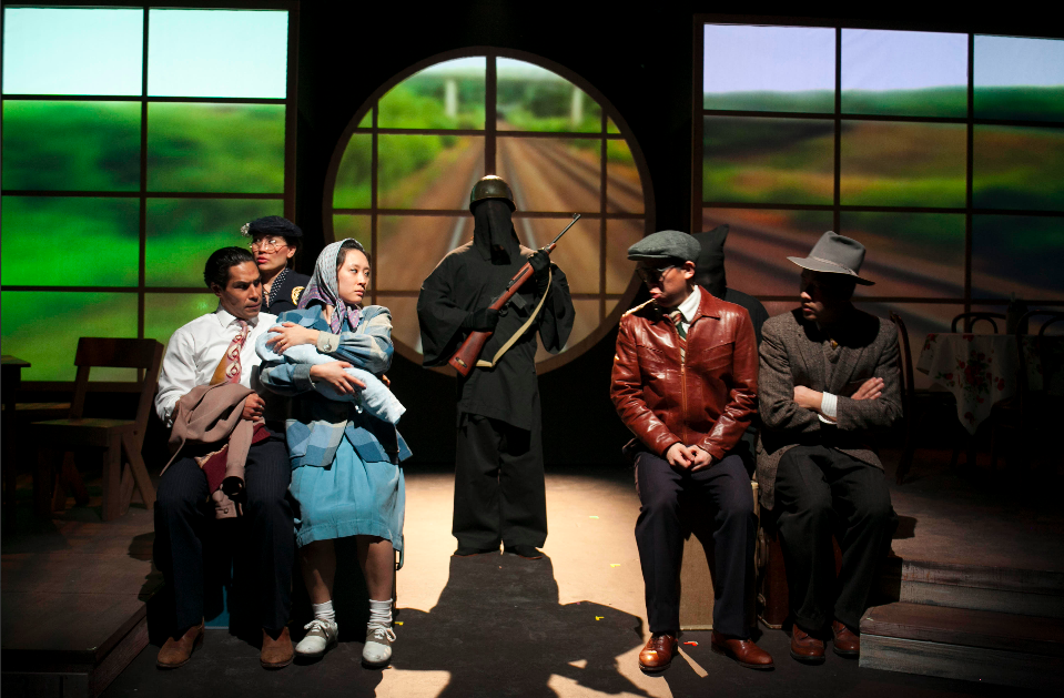 Director Valdez assembles all the pieces of the production to great effect. In support of a captivating dramatic arc are rustic sets that reflect the heart of family life. Over the complete backdrop, appealing projections at times reveal broad and changing environments and at others the intimacy of elder portraits and documents. The thoughtful soundtrack appropriately incorporates Mexican and Japanese music, airplanes, chirping crickets, and much more.