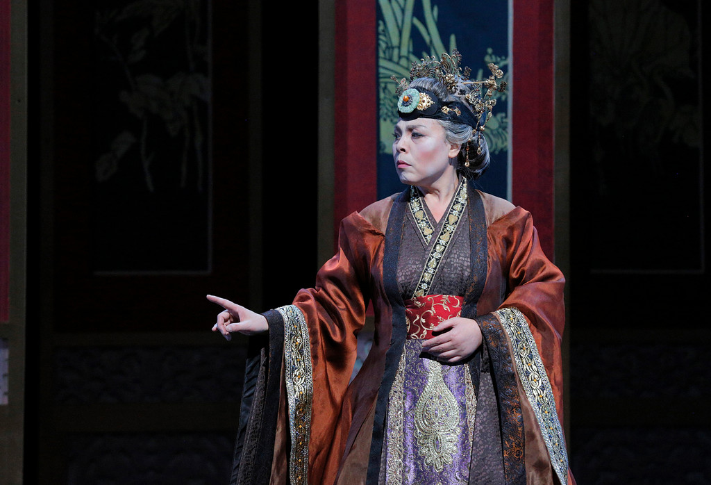 So, to summarize: there are many high points, including the lush orchestrations, some very beautiful duets and trios, an enchanting visual aspect, and some finely acted and sung performances, particularly that of Chinese contralto Qiulin Zhang making her American debut as Granny Jia. Ms. Zhang, thoroughly trained in the Western tradition, grew up in a family of performers in traditional Chinese Opera for which her father was a professional singer. She is altogether splendid.