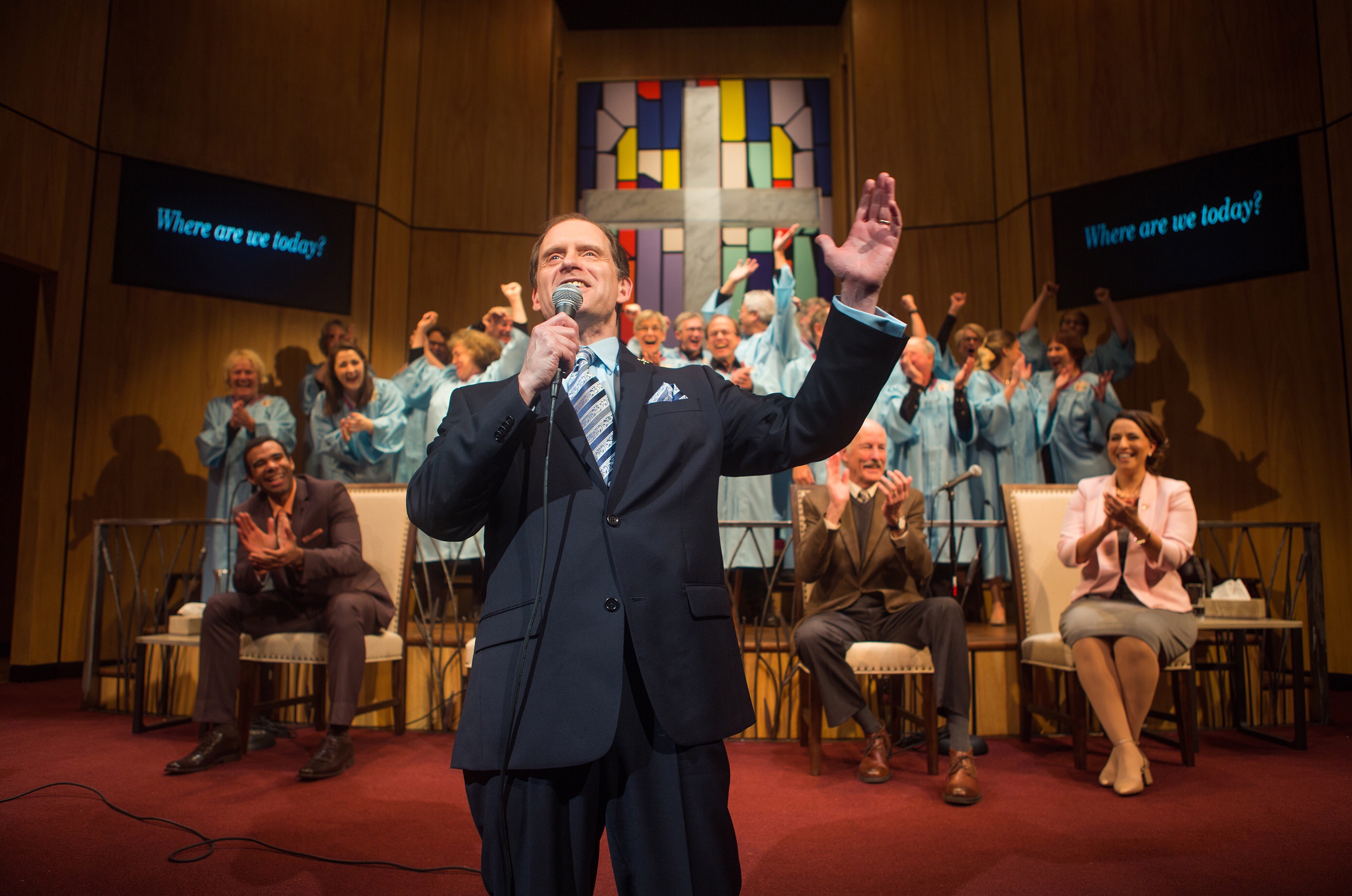 It isn’t perfect. The sermonizing and the didactic debates can be wearisome at moments, and having all of the characters speak into a hand held microphone as if officiating at a church service seems odd. Also, it stretches credulity that this church is a mega church with thousands of members; it seems far too homely for that.