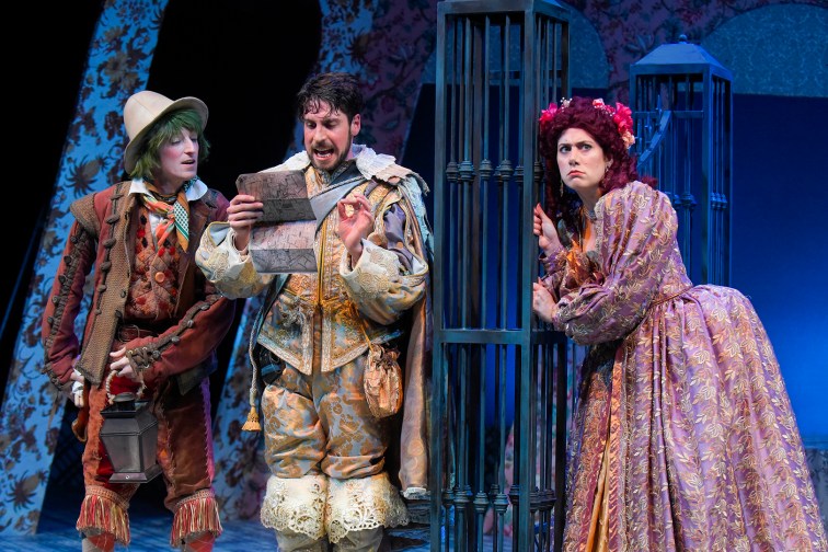 “The Liar”, by David Ives adapted from the comedyby Pierre Corneille, produced by Center Rep. Director: Michael Butler. Scenic Designer: Erik Flatmo. Costume Designer:Victoria Livingston-Hall. Lighting Designer: KurtLandisman. Sound Designer: Cliff Caruthers.