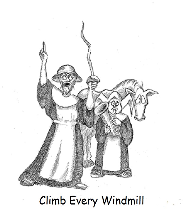 My partner, the ever gently cynical cartoonist Argule C. Klopnick, likes to refer to it as “Climb Every Windmill.”