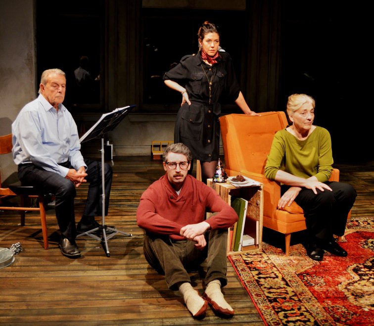 The success of this piece depends upon what can only be described as a miracle of casting: without any doubt, the older and younger actors appear to be the same person, physically, emotionally, vocally, in every detail. The result is far more convincing, I suspect, then a single actor could achieve with makeup and physical imitation, no matter how skillful. Rarely does one see actors achieve this level of empathy. If ever a company deserves an award for ensemble work, this one does! (They are: Will Marchetti, Andrew Pastides, Zoë Winters, and Carla Spindt.