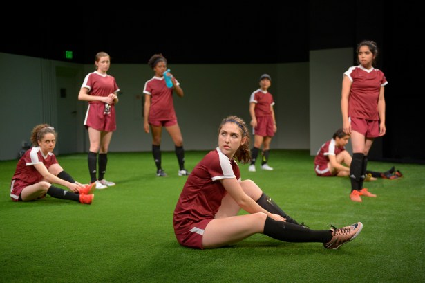 While delivering what amounts to a group stream-of-consciousness, the company is so tight that at first The Wolves seem like a single character. And they do this while engaged in very strenuous physical activity, running repeated short sprints across the stage, stretching, performing calisthenics, dealing with injuries and periods and more.