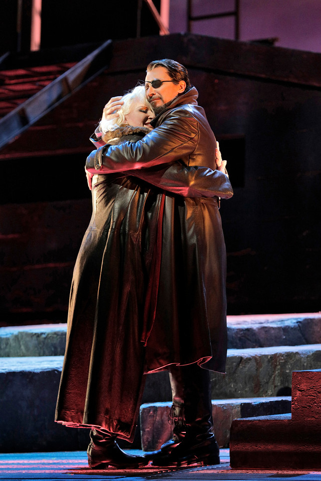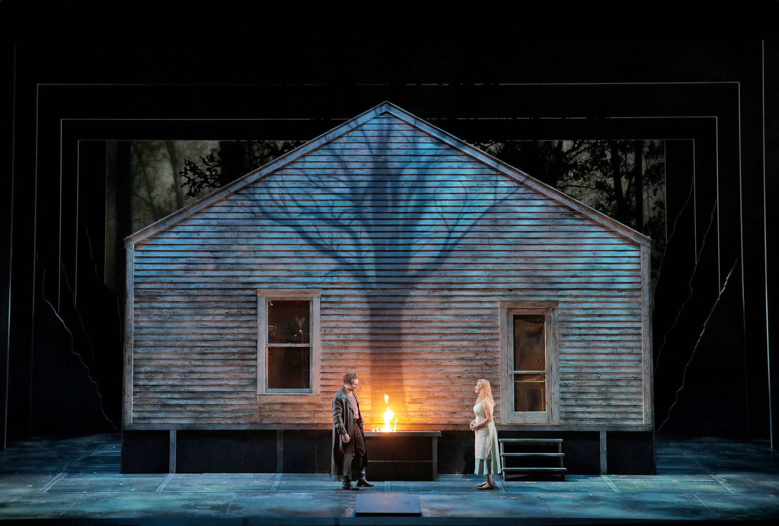 The second opera of the Ring Cycle, “Die Walkürie” opens far from Valhalla, the home of the gods, outside the cabin of the huntsman Hunding (Raymond Aceto) and his unwilling bride, Sieglinde (Karita Mattila). The action begins while Hunding is away, and a stranger, Siegmund (Brandon Jovanovich) flees from the forest into the cabin clearing where Sieglinde offers assistance. Much of the opera is taken up with the love story of Sieglinde and Siegmund, and appealing lovers they are.