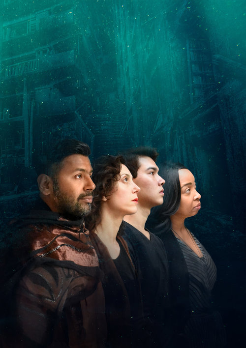 This tight ensemble works with almost no set, and only minimal (but effective) lighting and costumes. They contort their voices and bodies to create an amazing range of events and emotions, even the weather (at one point they seem to be caught up in a typhoon). They are all excellent, but I must call out the especially fine work of Peter Stielstra, a recent high school graduate, who I believe is making his professional debut with this production.