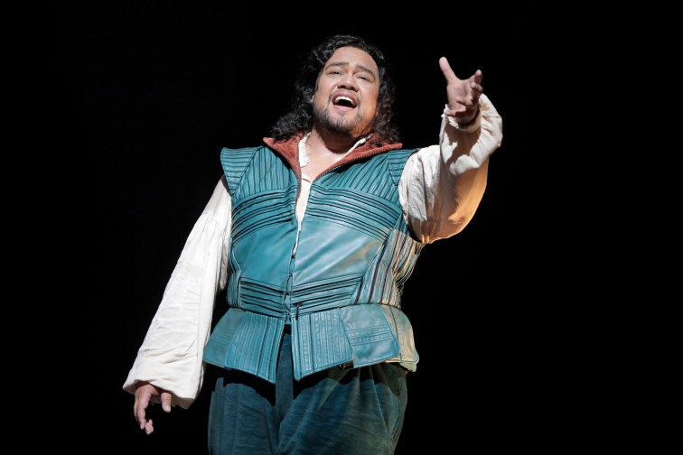 As Juliet, the enormously popular Nadine Sierra lives up to her reputation: she sings with a lyric sweetness that uplifts the listener, and her acting is full of convincing adolescent emotion. Pene Pati’s Romeo is simply glorious. As an actor, he has a face that is indescribably expressive, conveying every nuance of emotion. As a singer, he soars effortlessly throughout his entire range of notes and dynamics, a voice so supple it is like a silken rope, strong yet smooth, sweet and lustrous. At the close of the scene where he kills Juliet’s cousin Tybalt (who has just killed Romeo’s cousin Mercutio), Pati delivers a show-stopping sustained high C that is stunning in its virtuosity, but also perfectly expressive of the dramatic moment.