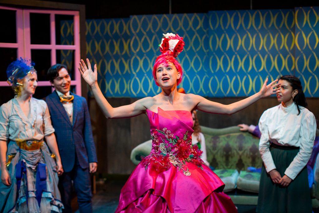 With characters who are avatars and settings that are supposedly computer simulations, it is not surprising that costumes and sets are an especially charming feature of this production. Kudos to designers Kathleen Qiu and Katie Whitcraft.