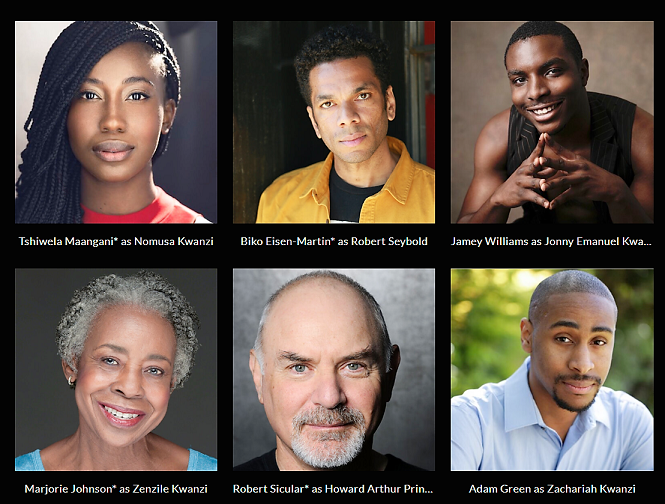 Biko Eisen-Martin : Robert Seybold. Adam Green: Zachariah Kwanzi. Marjorie Johnson: Zenzile Kwanzi. Tshiwela Maangani: Nomusa Kwanzi. Robert Sicular: Howard Arthur Prinzloo. Jamey Williams: Jonny Emanuel Kwanzi.