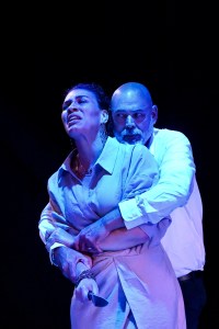As a reviewer, I have been stymied. What to say about such an experience? For days, I’ve put off trying to respond. But, here is an interesting point: almost two weeks after seeing the production I can’t let go of it. The image and sound of Leontyne Mbele Mbong as The Spouse emitting a roar of grief and terror worthy of the most haunted figure of tragic Greek drama haunts me—and yet I can’t tell you what moved her to such a cry. It was grief in a vacuum. Similarly, the moral confusion conveyed by Michael Torres as The One will not release me from its grip. These two actors drop in and out of levels of emotional intensity that can leave the viewer shaken by its sheer physical force.